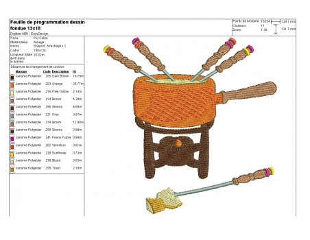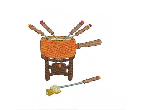 Voici une fondue à broder sur diverses créations , sur un tablier , un torchon