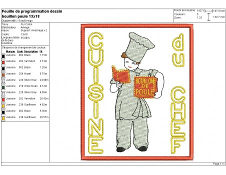 Voici une publicité vintage, un cuisinier avec son cube de bouillon de poule à broder en appliqué sur diverses créations pour votre cuisine ou vos créations publicitaires