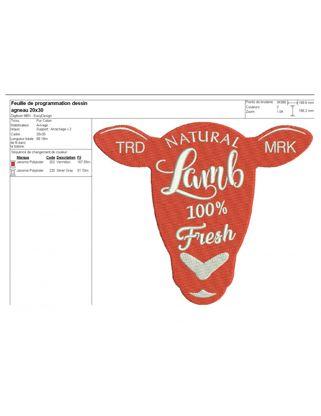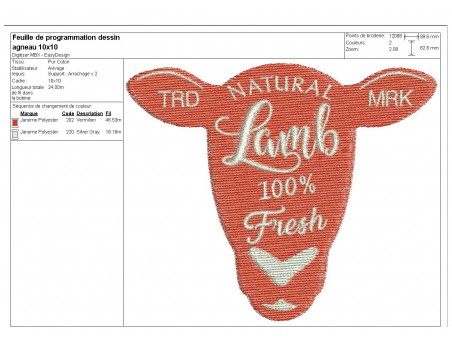 Voici une tête d'agneau à broder sur diverses créations pour votre cuisine