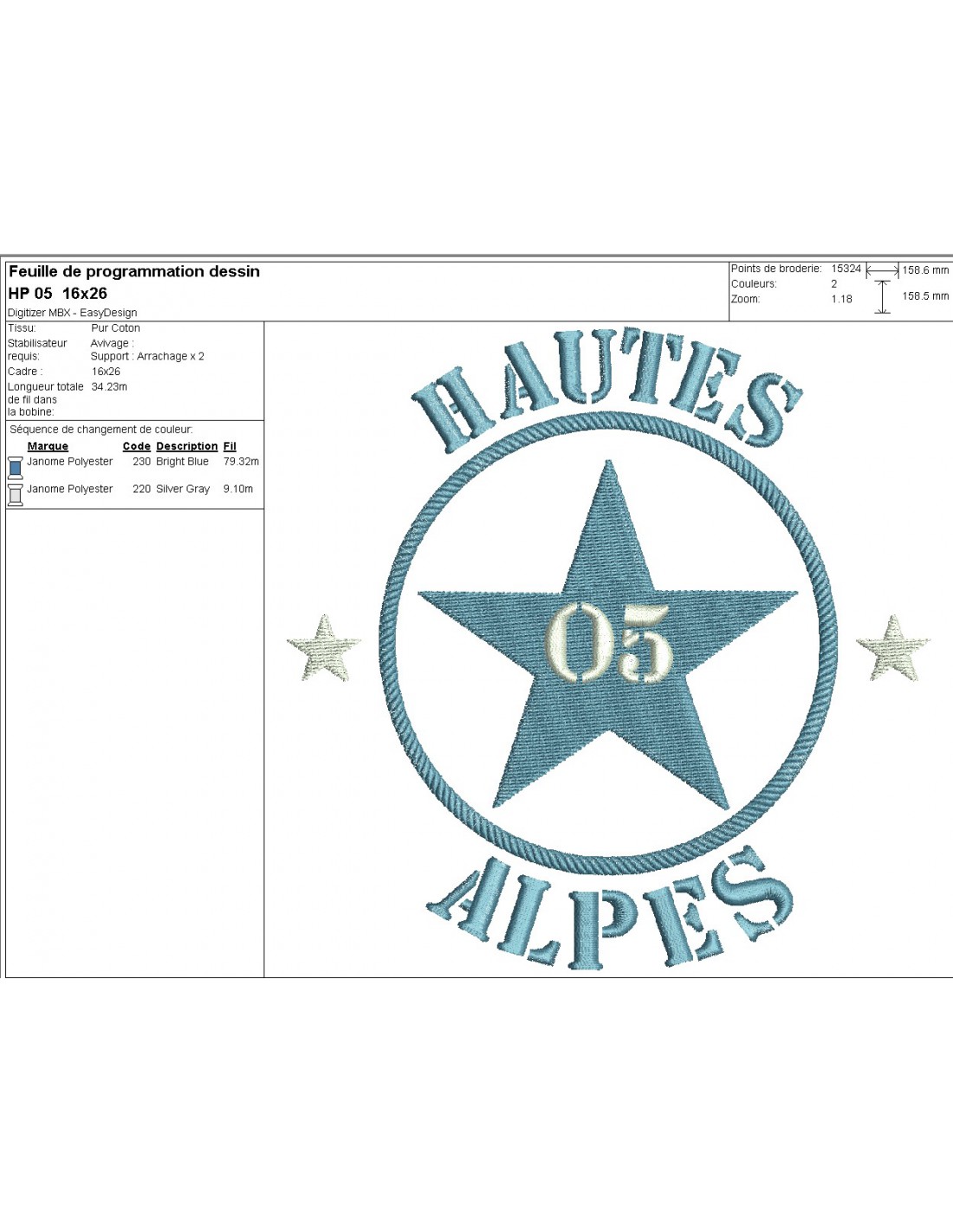 Motif de broderie machine étoile département 05 Hautes Alpes