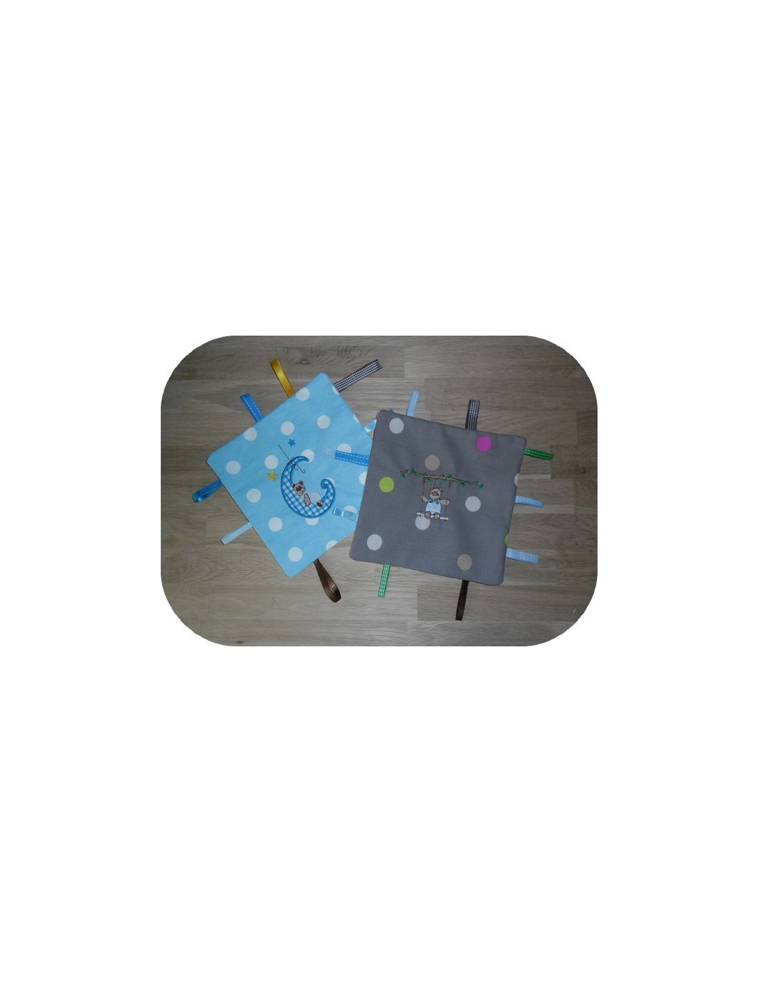 Voici un ourson sur la lune en appliquée à broder sur diverses créations pour les enfants
