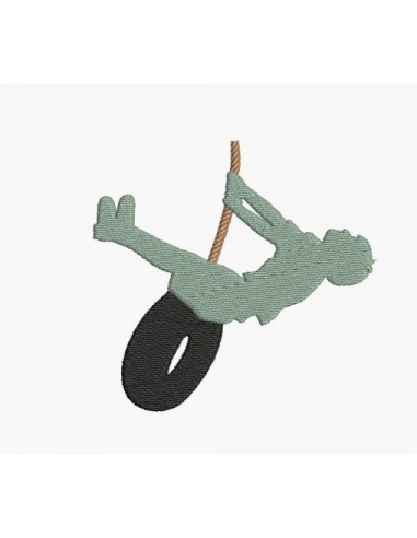 Voici une silhouette de petit garçon faisant de la balançoire sur un pneu à broder sur vos diverses créations