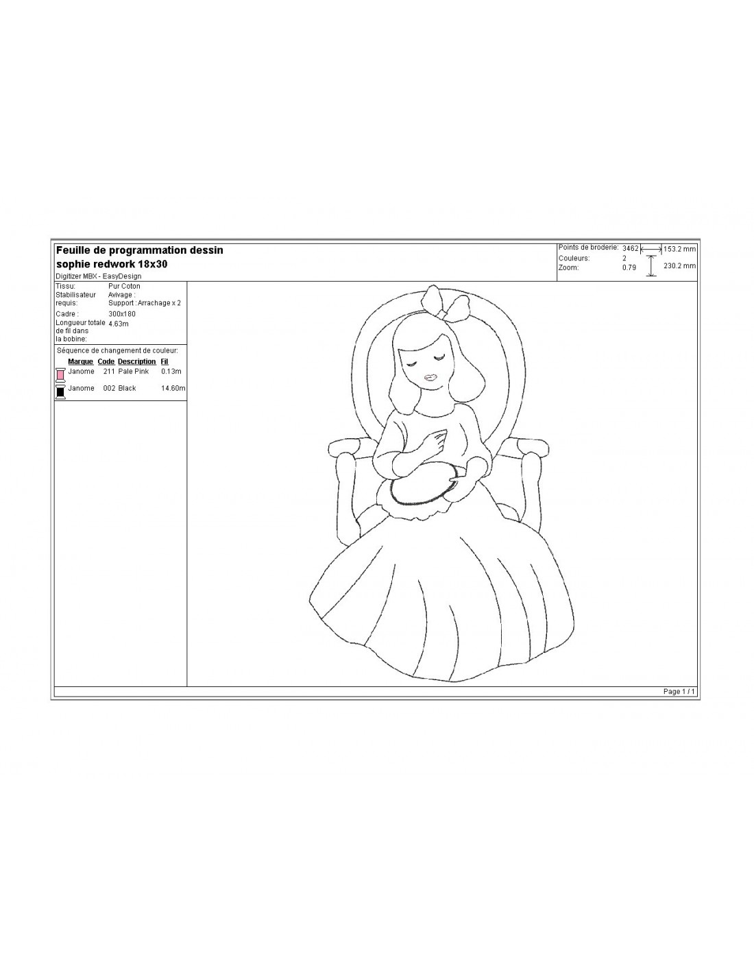 Motif de broderie machine Sophie petite fille modèle en redwork