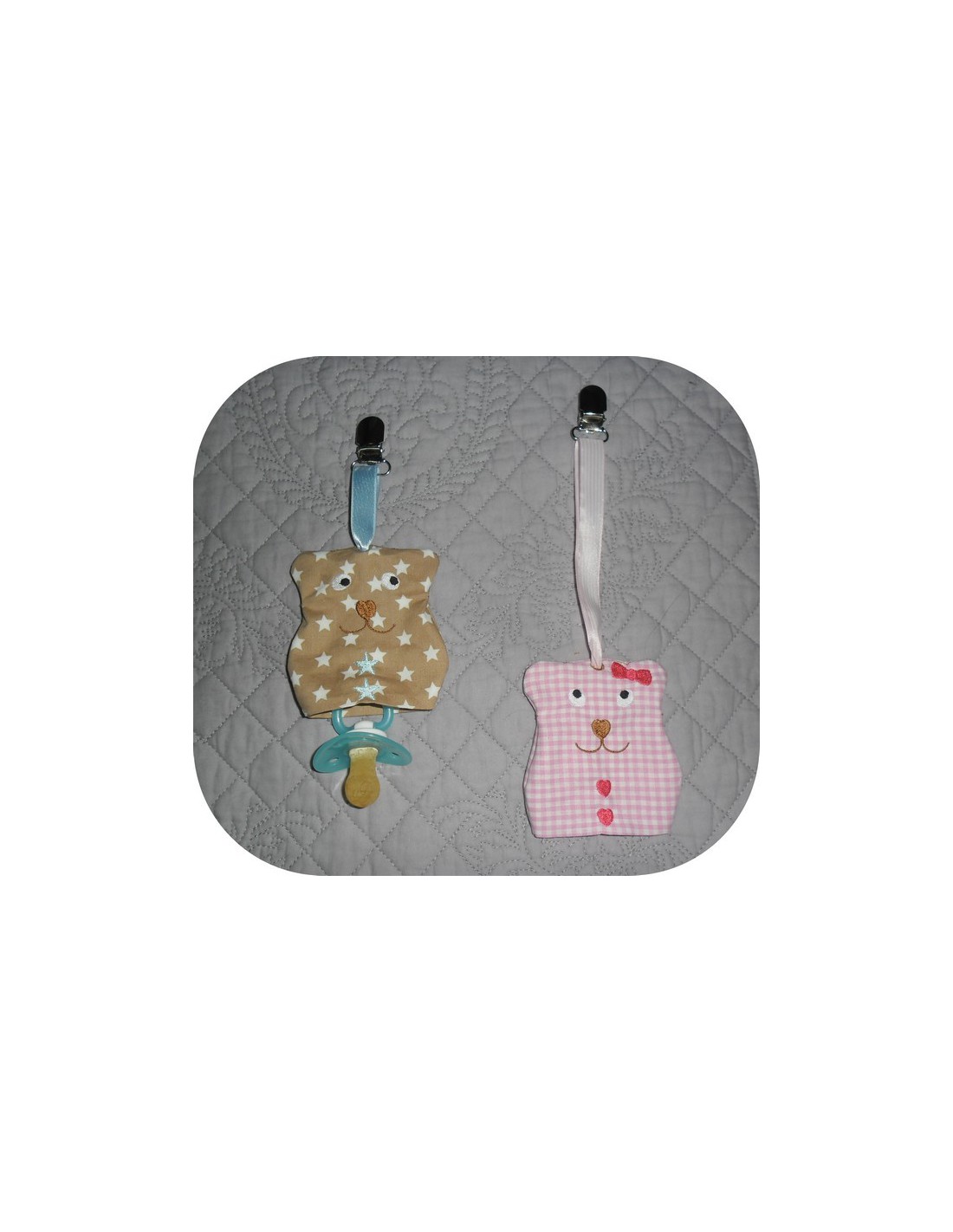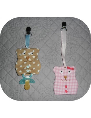 Motif de broderie machine attache tétine ou porte clé ourson ITH