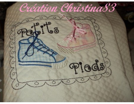 Une petite basket en appliqué, version fille ou garçon suivant les tissus que vous utilisez