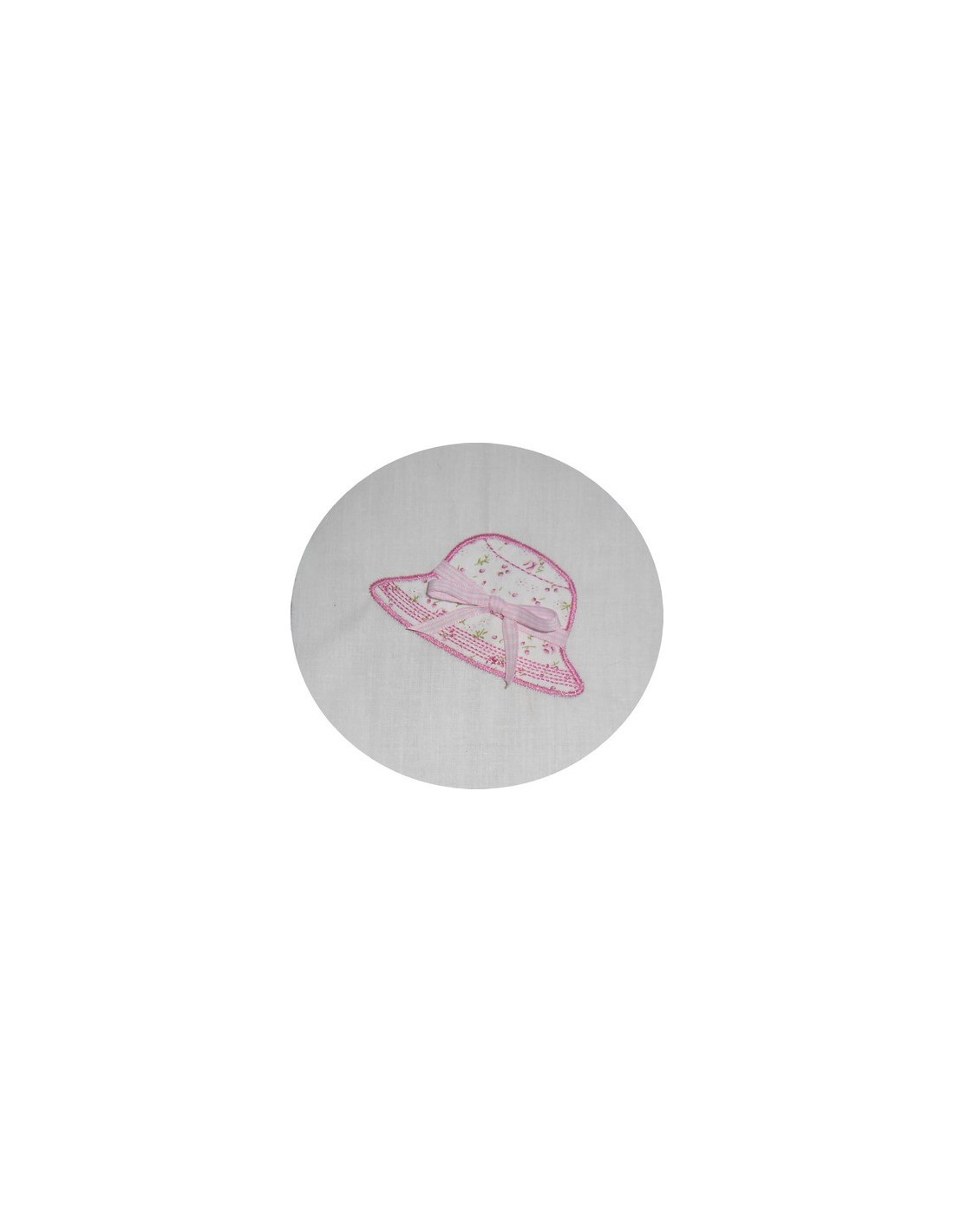 Un chapeau en appliqué a décliner en version fille ou garçon suivant les tissus utilisés, passez un ruban dans les oeillets , un p'tit noeud, et voilà un chapeau tout joli à broder sur des petits pochons par exemple