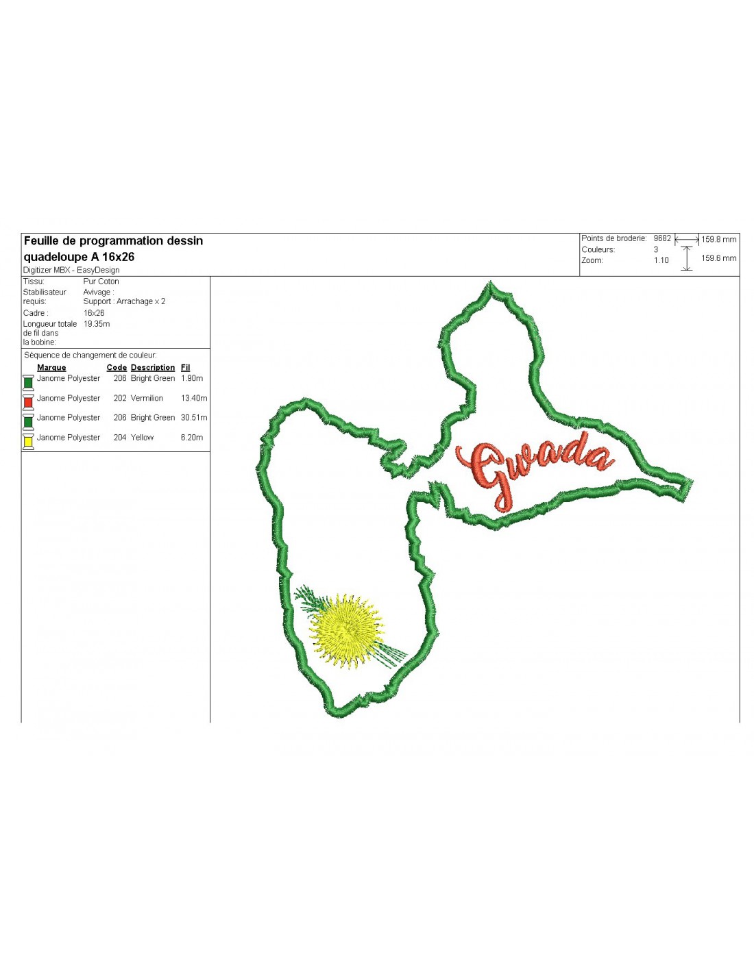 Voici un motif de broderie, la guadeloupe à broder sur des créations locales ou estivales
