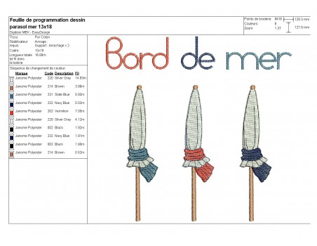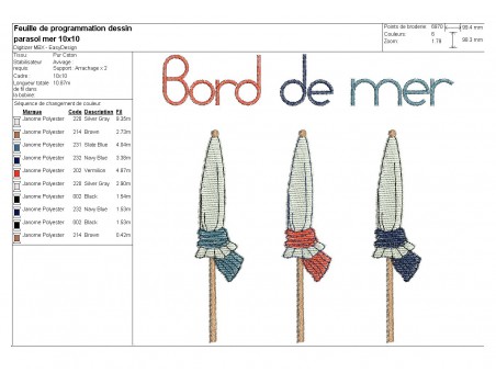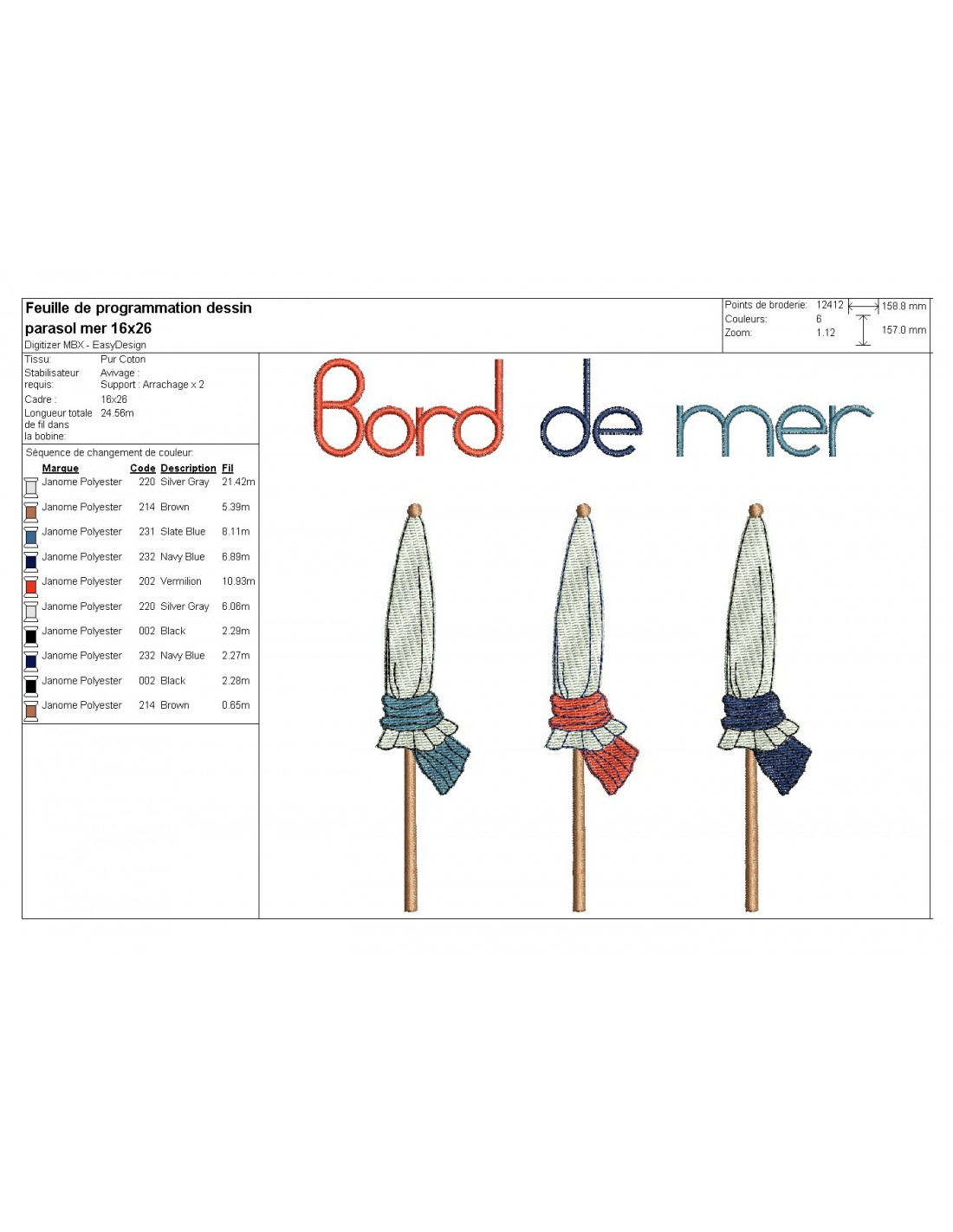 Voici des parasols dans la collection bord de mer à broder sur diverses créations estivales ou autres créations