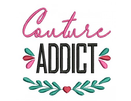 Voici le mot couture addict a broder sur vos diverses créations, trousses pochettes ou en faire des étiquettes