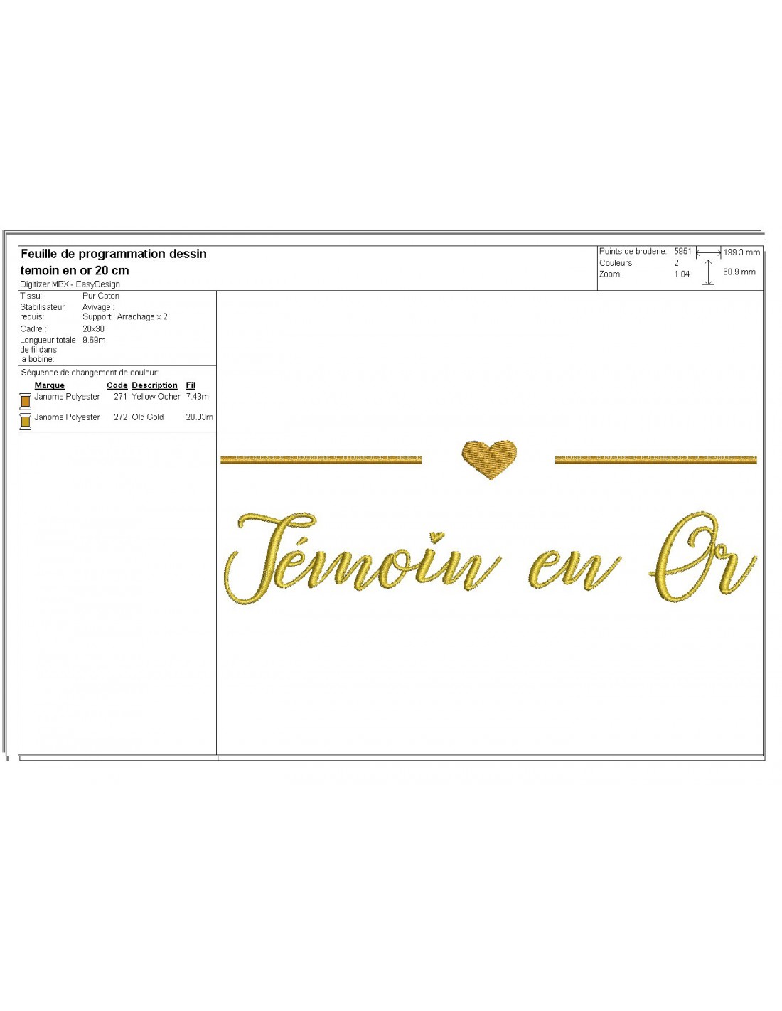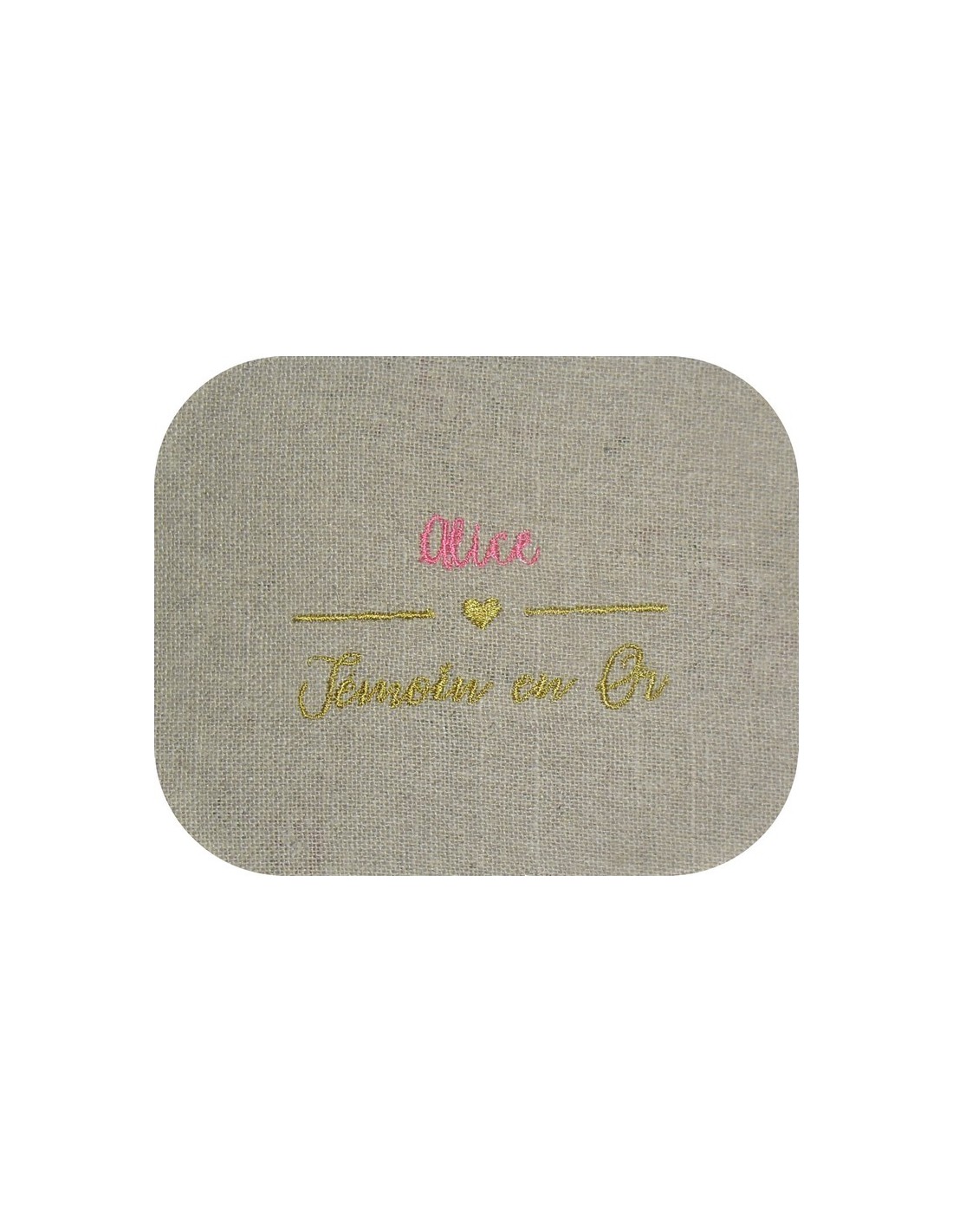 Voici un témoin en or à personnaliser sur la partie haute avec un prénom à broder sur les créations liées à un mariage