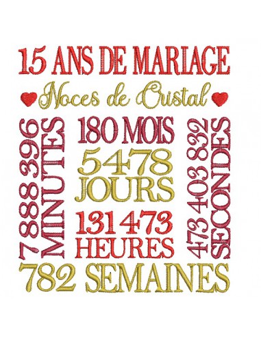 Motif de broderie machine noces de cristal 15 ans de mariage