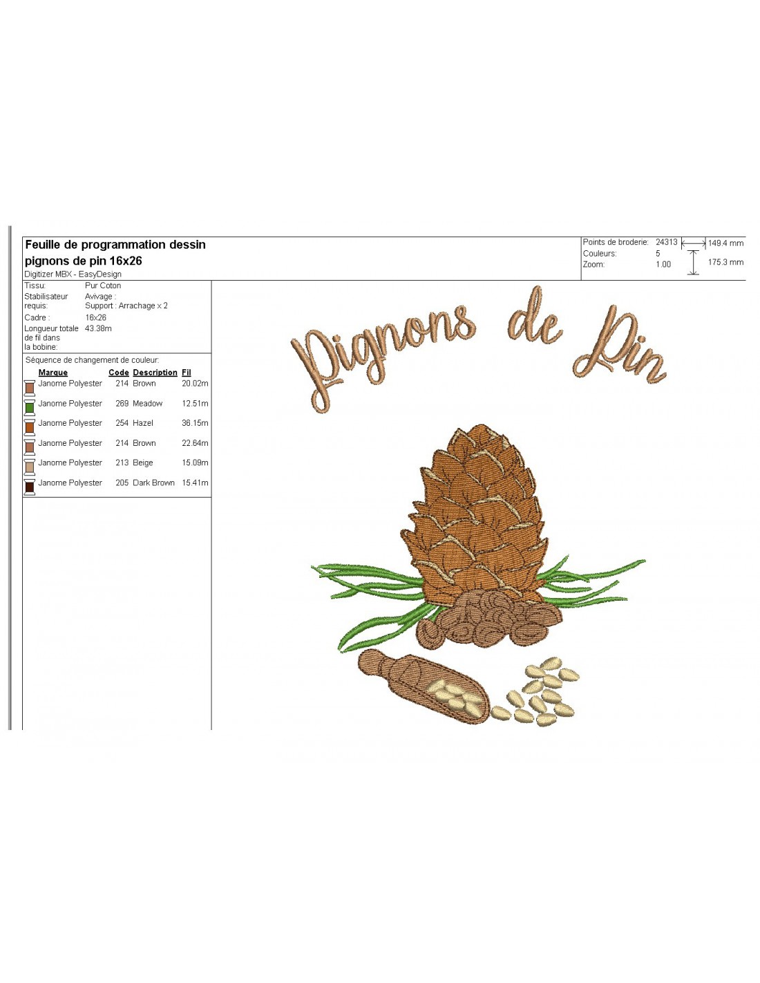 Motif de broderie machine pignons de pin