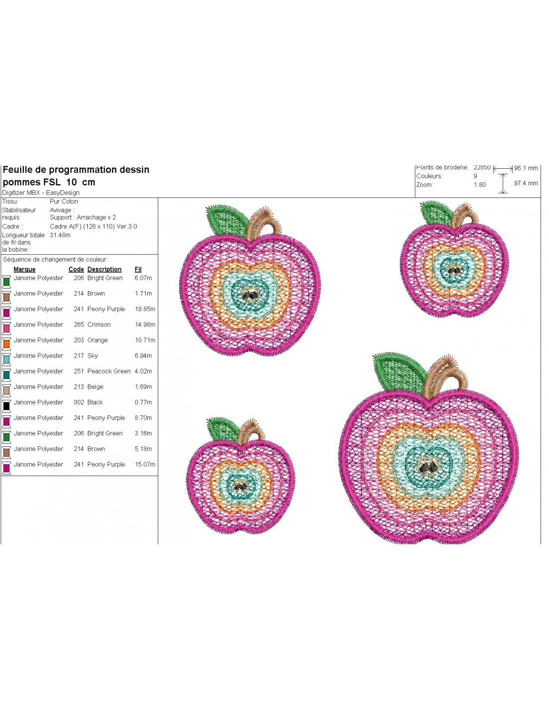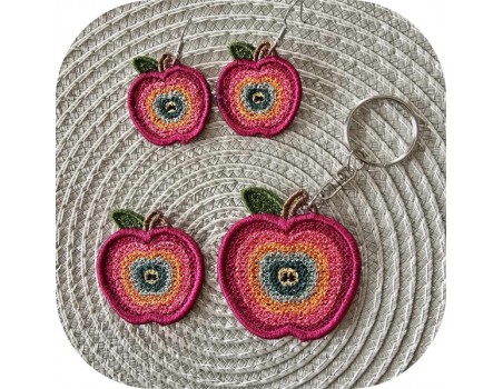Voici des pommes en multicolore à broder en 4 tailles selon vos projets, bijoux, boucles d'oreilles, finitions de pochettes, charms etc