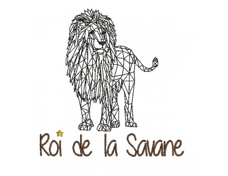 Voici un lion roi de la savane à broder en 5 tailles selon vos projets, sur vos diverses créations sur le thème de l'origami ou dans un esprit scandinave ou géométrique