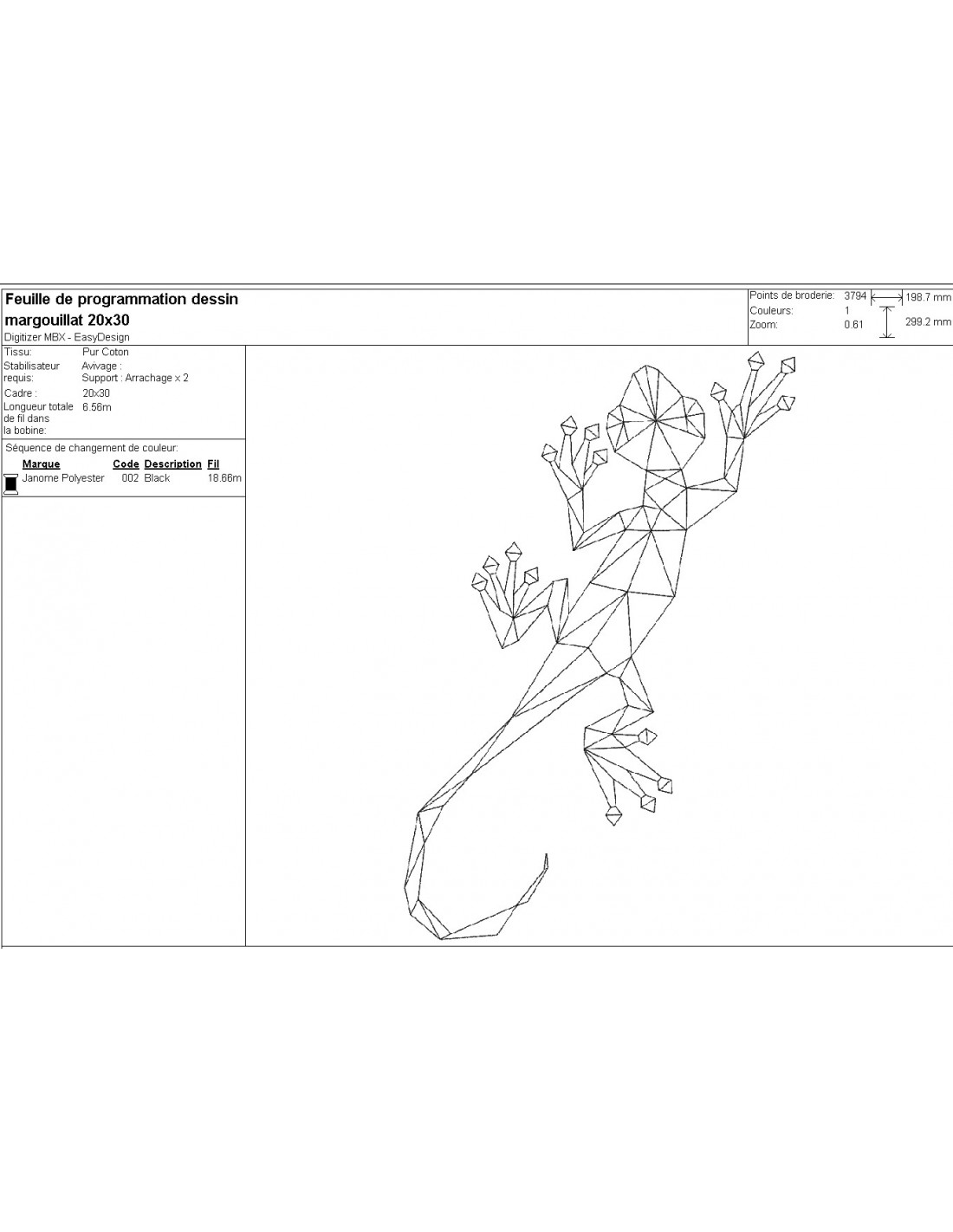 Motif de broderie machine margouillat origami