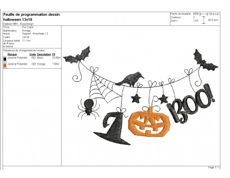 Voici pour vos créations sur le thème d'halloween, la corde avec l'araignée, la citrouille les chauve souris, le chapeau de la sorcière et le BOO!