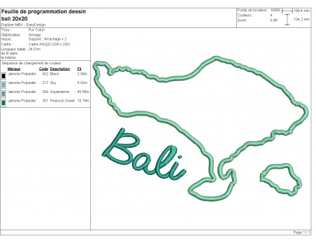 Voici un motif de broderie, l'ile de Bali à broder sur des créations locales ou estivales