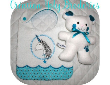 Version mixte pour ce bavoir a petits festons , idéal pour vos cadeaux destinés aux bébés de 3 à 24 mois avec un motif de votre choix