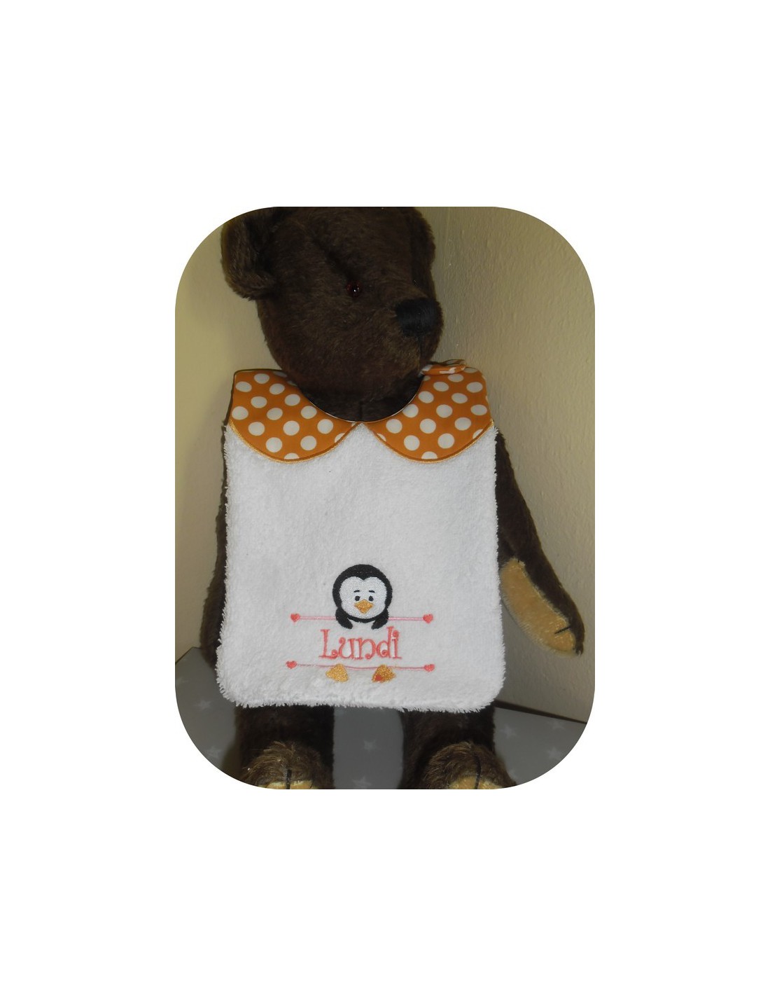 Ce bavoir pingouin avec ses petits coeurs sera idéal pour un bébé