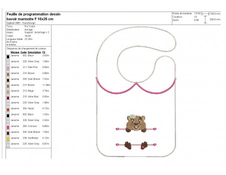 Motif de broderie machine ITH Bavoir marmotte prénom fille