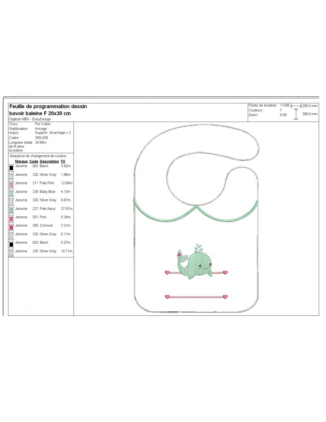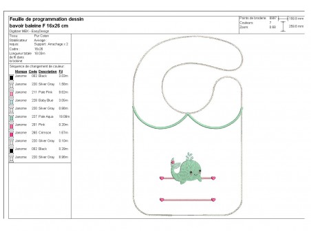 Motif de broderie machine ITH Bavoir baleine prénom fille