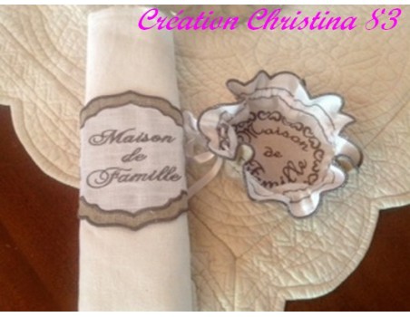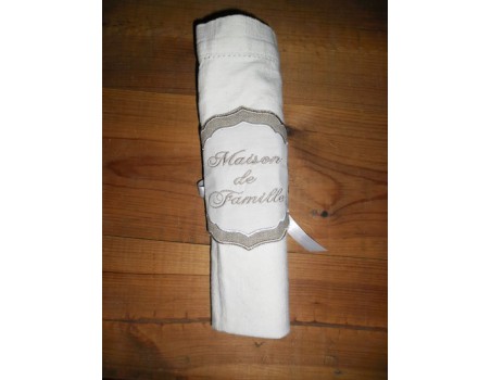 Une version avec le texte " Maison de Famille" et une version vierge pour y broder un monogramme ou un motif en son centre