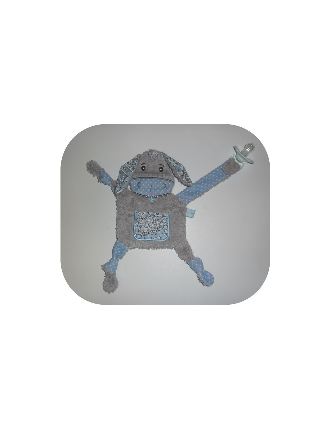 Voici un doudou âne à broder tout dans le cadre pour les enfants