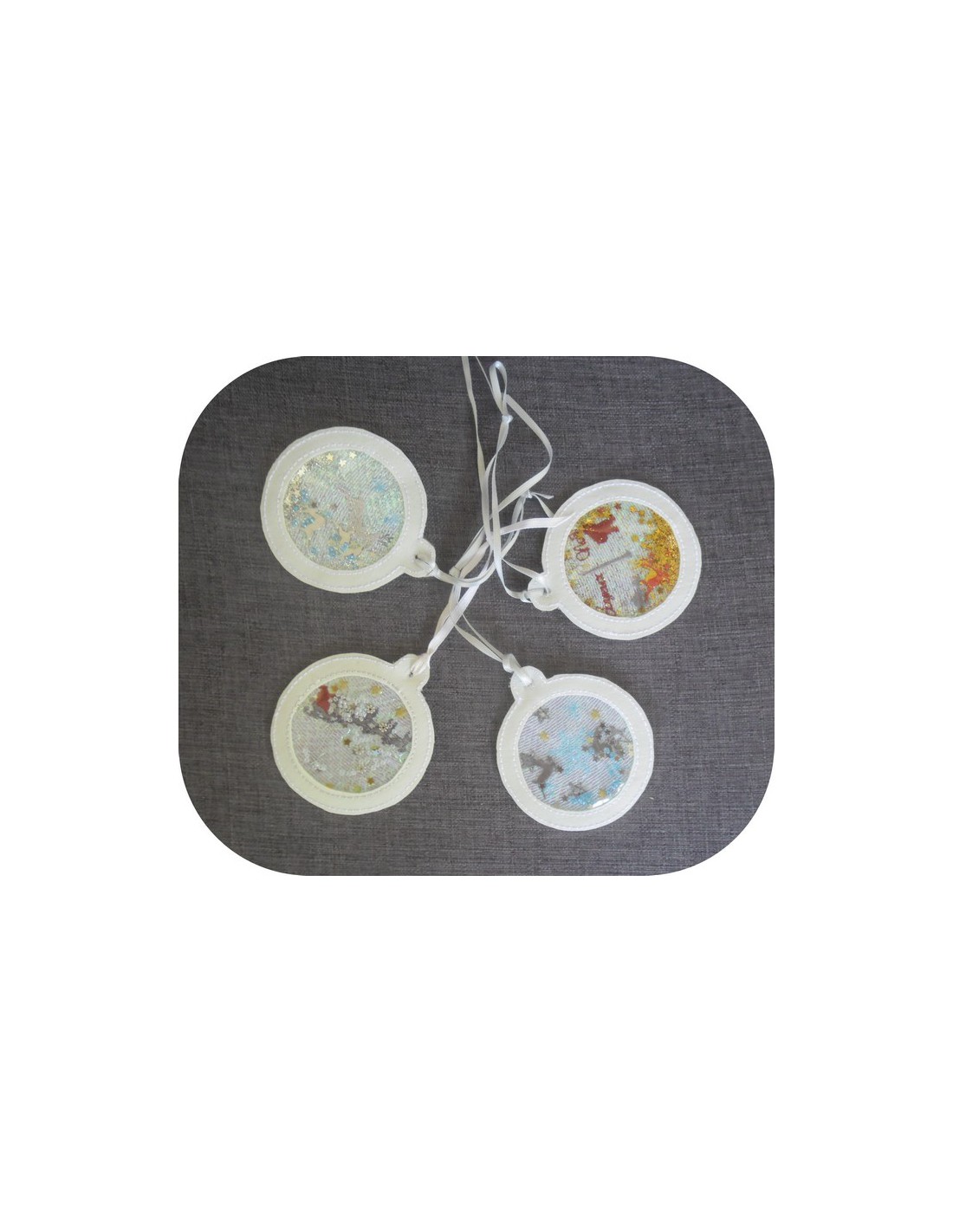 Voici les boules de noël à broder tout dans le cadre pour décorer votre sapin ou vos paquets cadeaux