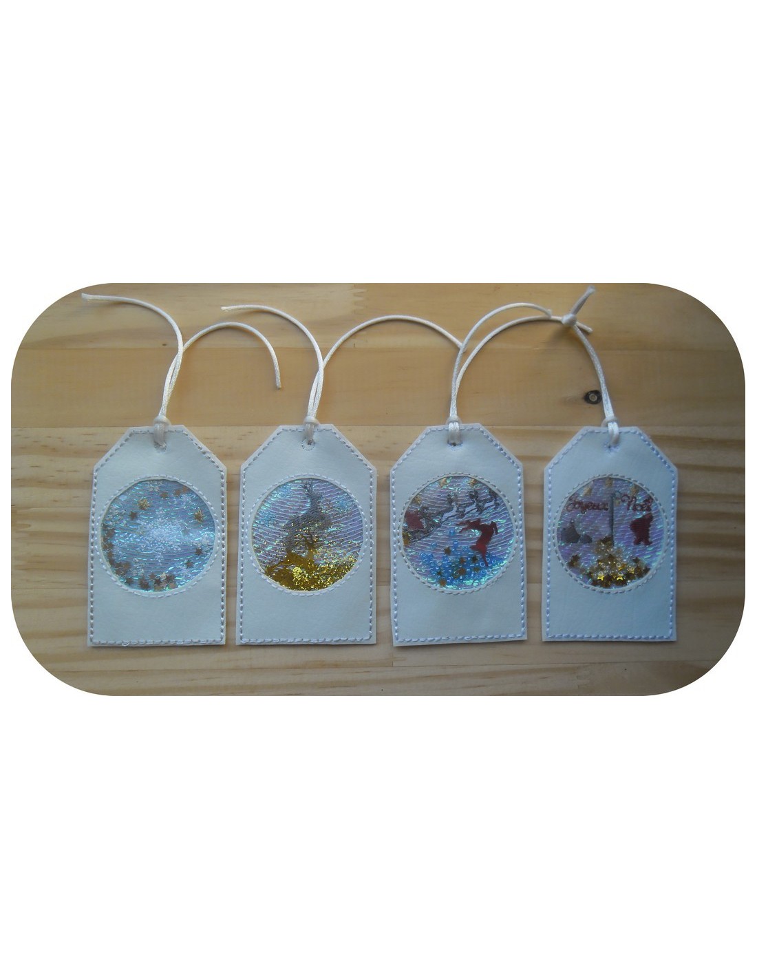 Motif de broderie machine étiquette boule de noël flocon en mylar et en relief ITH