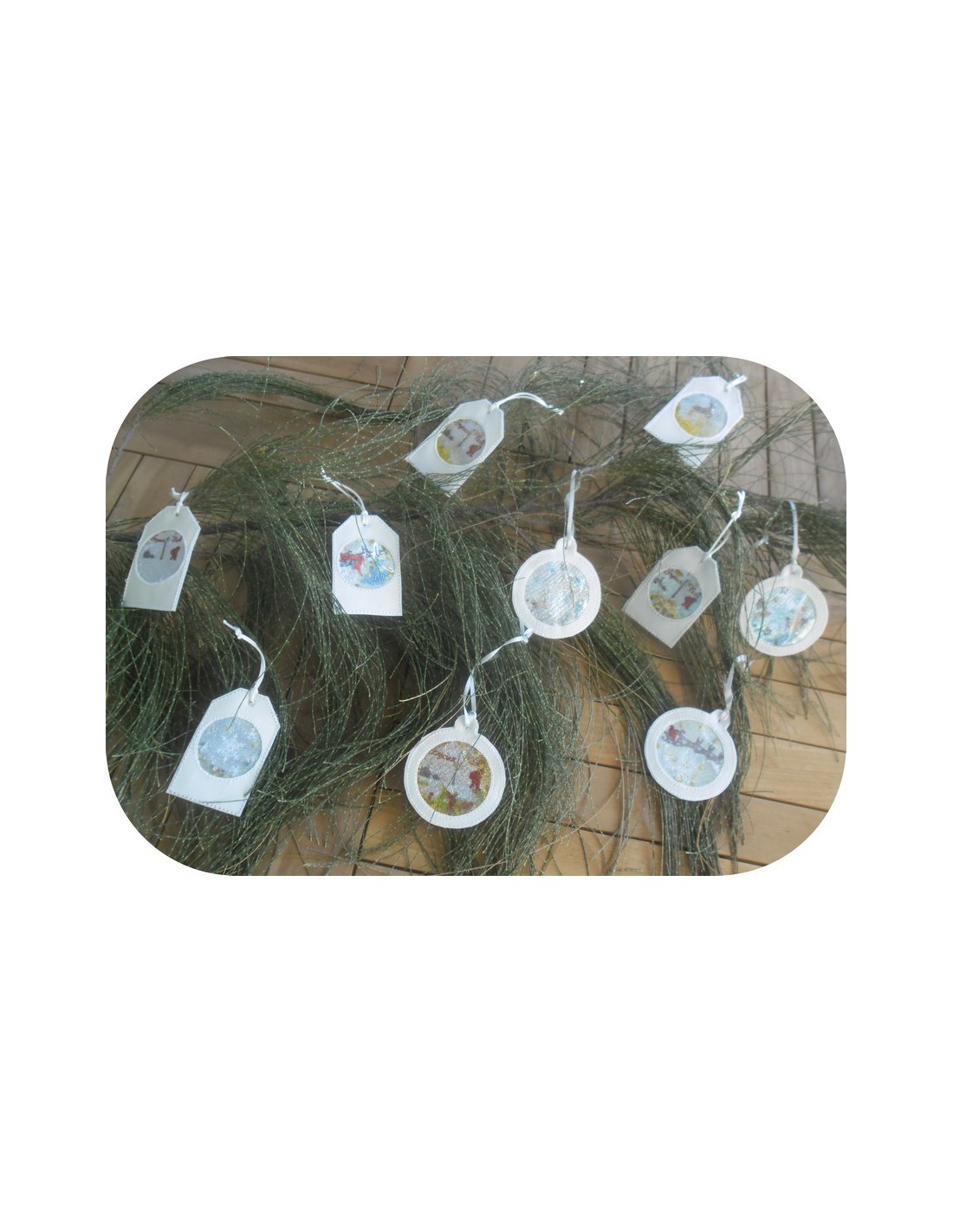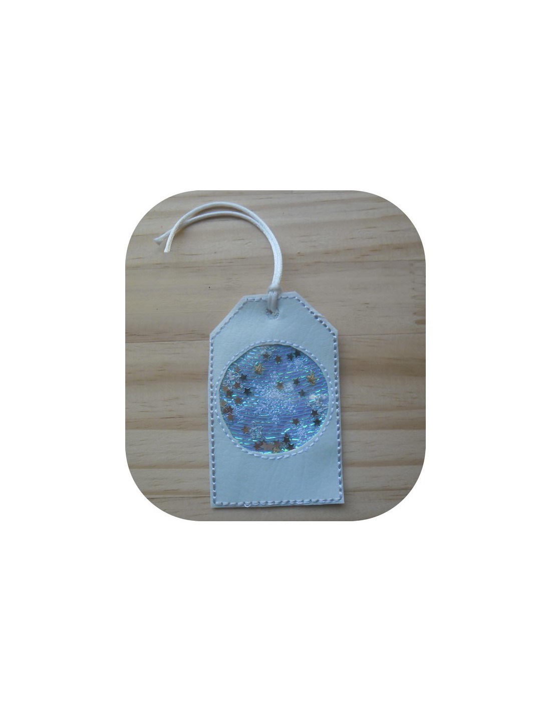 Voici une étiquette boule de noël flocon à broder tout dans le cadre pour décorer vos paquets cadeaux ou le sapin