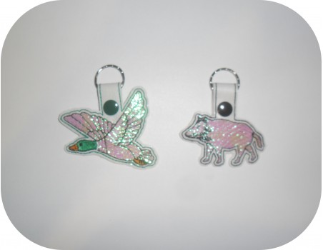 Motif de broderie machine porte clé sanglier en mylar ITH