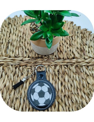 Voici un porte clés en forme de ballon de foot entièrement doublé à broder tout dans le cadre 10x10 cm