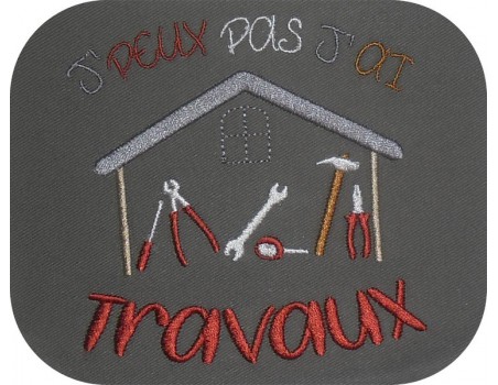 Motif de broderie machine texte j'peux pas j'ai travaux