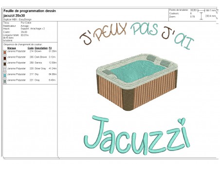 Motif de broderie machine j'peux pas j'ai jacuzzi