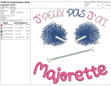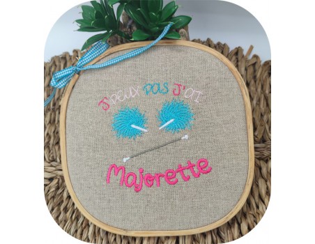 Voici un motif de broderie j'peux pas j'ai majorette à broder sur des créations comme un sac, un tote bag etc avec les pompons et le bâton de majorette