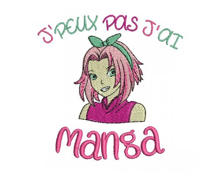 Voici un motif de broderie j'peux pas j'ai manga avec une fille à broder sur des créations pour les incondionnels des mangas
