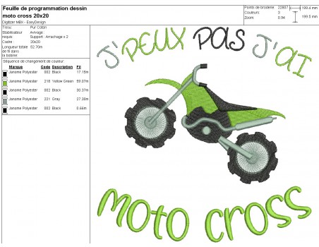 Voici un motif de broderie j'peux pas j'ai moto cross à broder sur des créations pour les adeptes du guidon