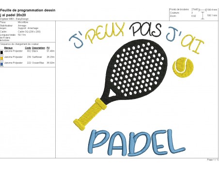 Voici la version padel à broder sur vos diverses créations pour cette discipline