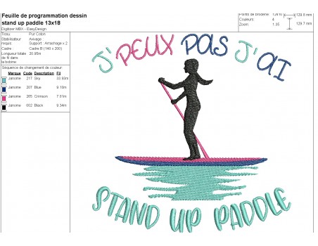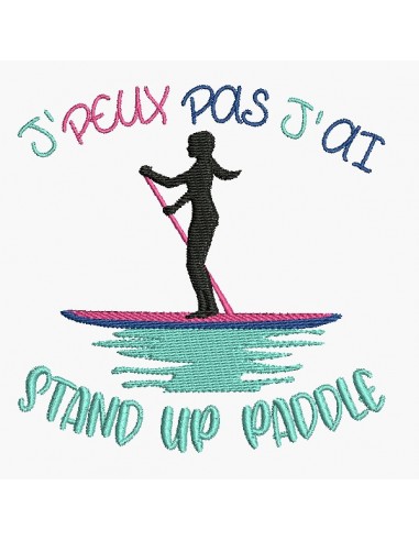 Motif de broderie machine j'peux pas j'ai stand up paddle femme