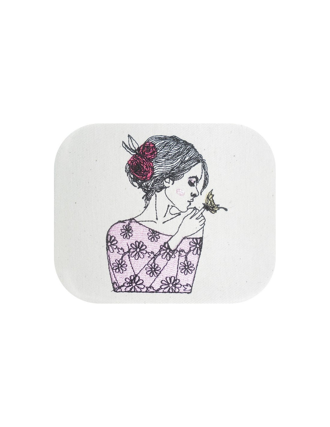 Voici une femme avec un papillon a broder pour vos créations féminines comme sur une trousse, un drap de bain, une boite, libre à vous d'imaginer vos mises en scènes brodées