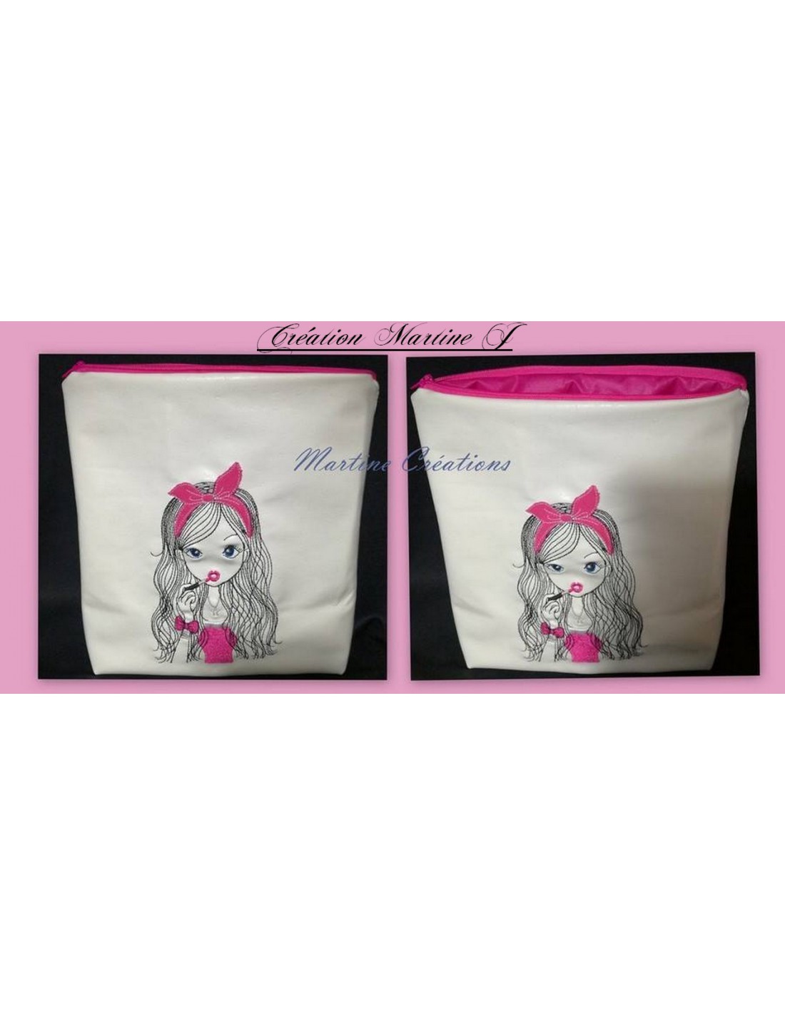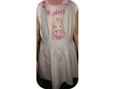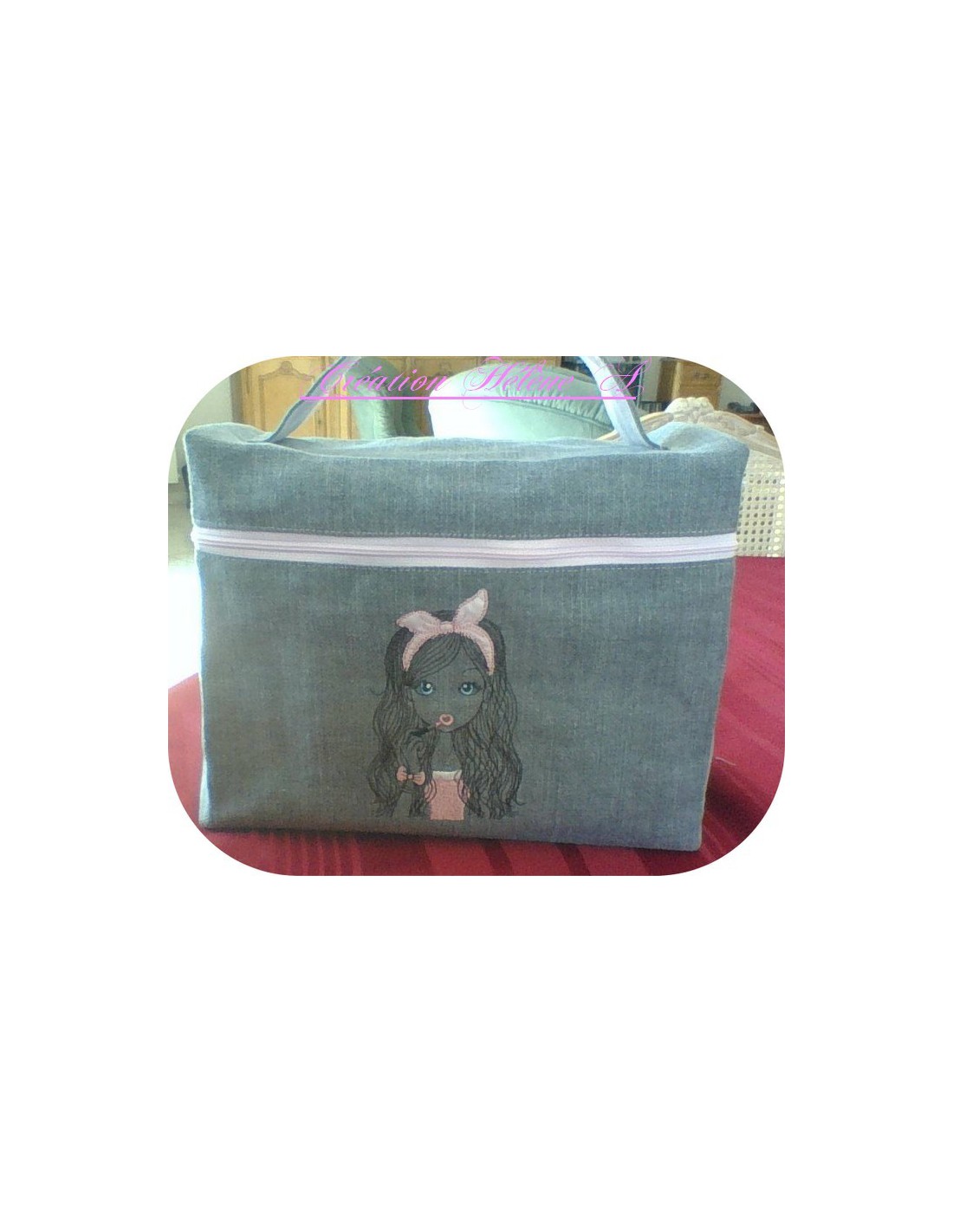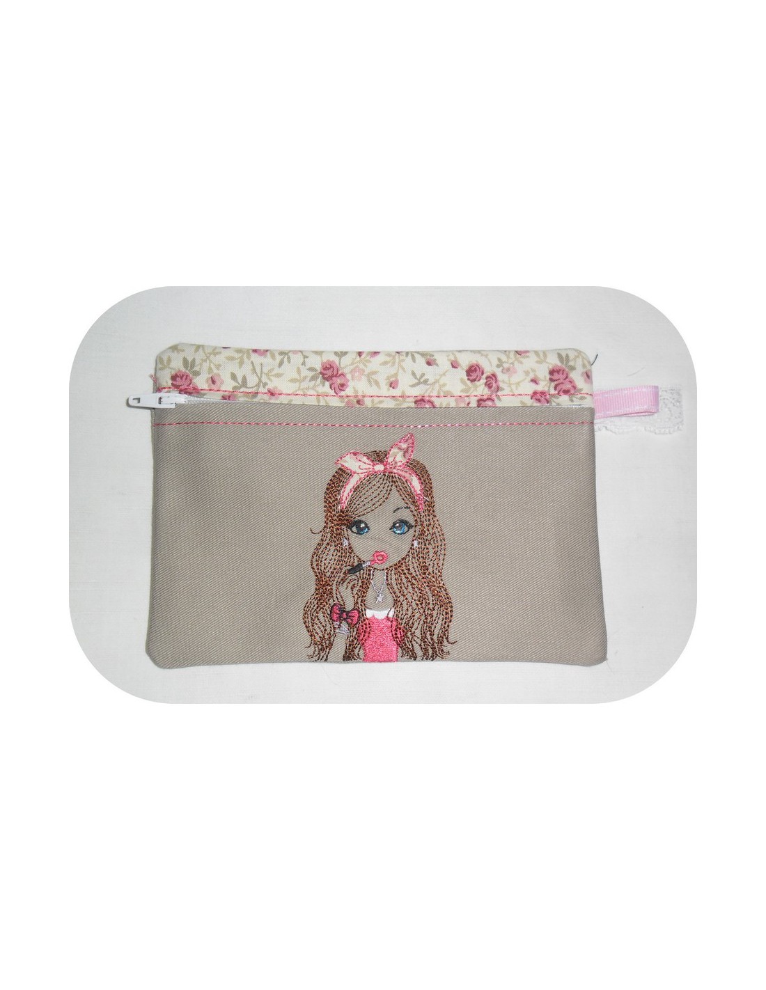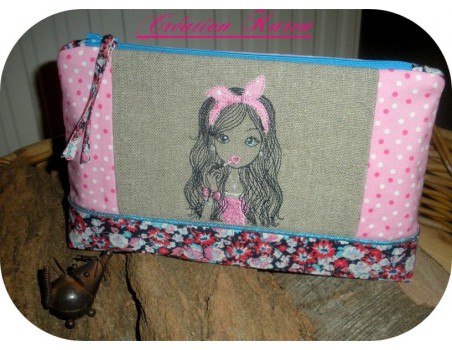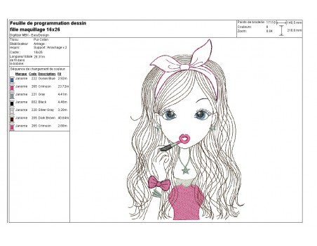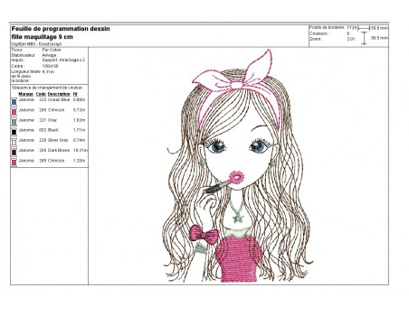 Voici une fillette qui se maquille à broder sur vos diverses créations pour enfants ou pour se faire une trousse maquillage