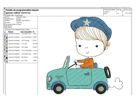Voici un petit garçon dans sa voiture à broder sur vos diverses créations,