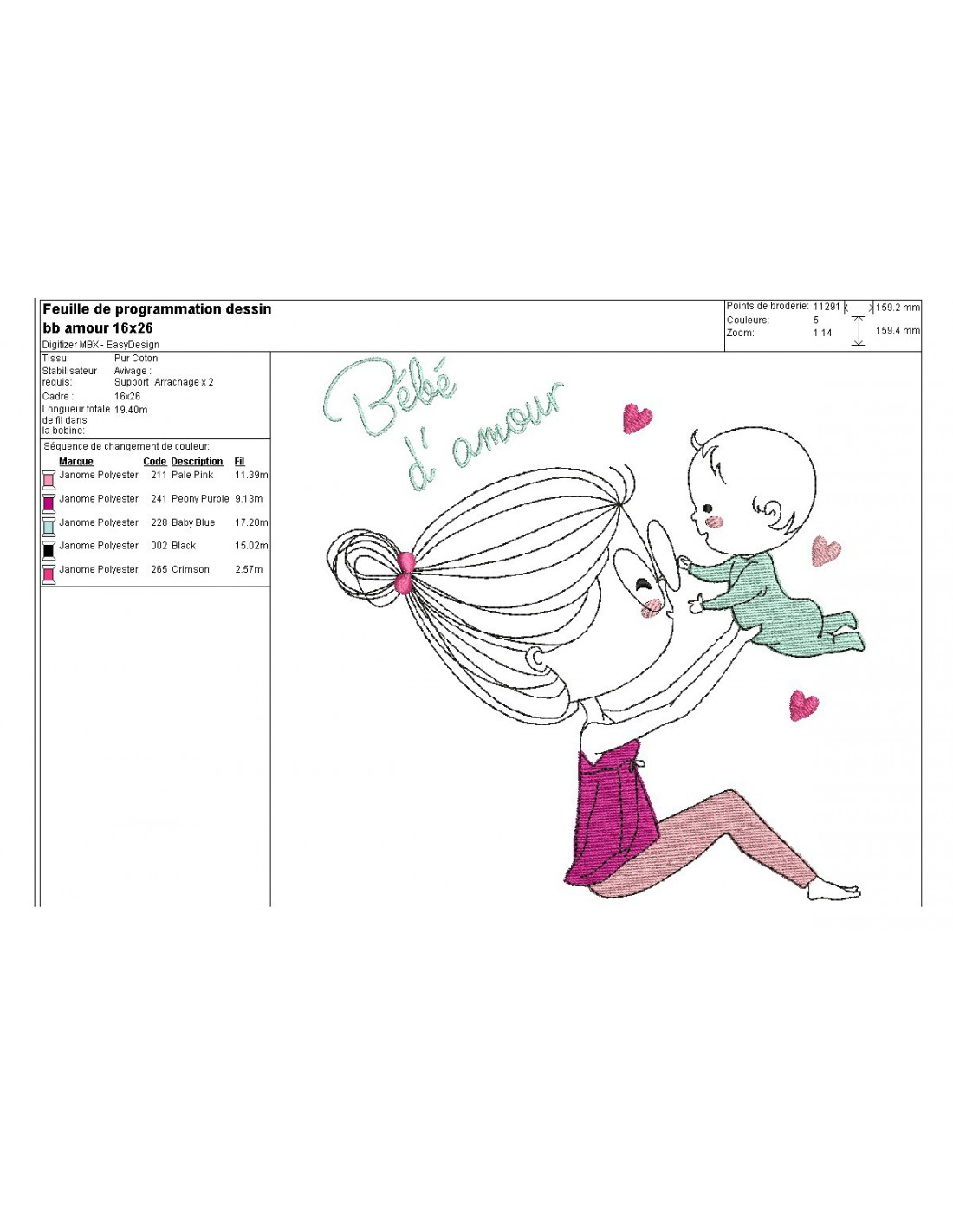 Motif de broderie machine bébé d'amour
