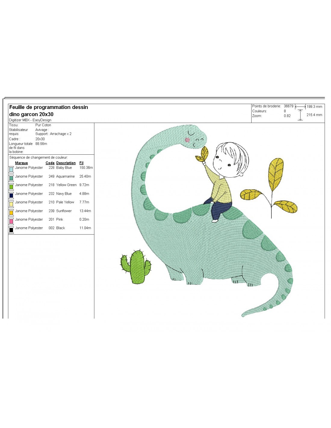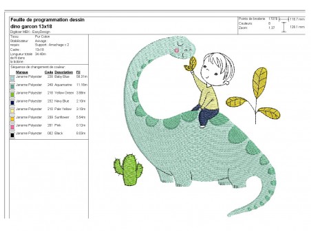 Motif de broderie machine garçon et dinosaure