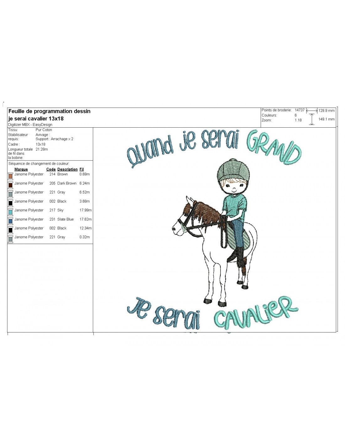 Motif de broderie machine quand je serai grand, je serai cavalier