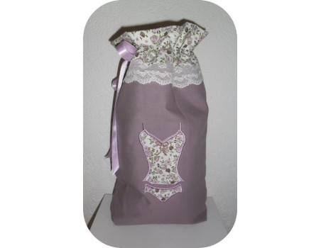 Voici un autre ensemble de sous vêtements à broder en appliqué sur de jolis pochons autant pour les femmes que pour les ados