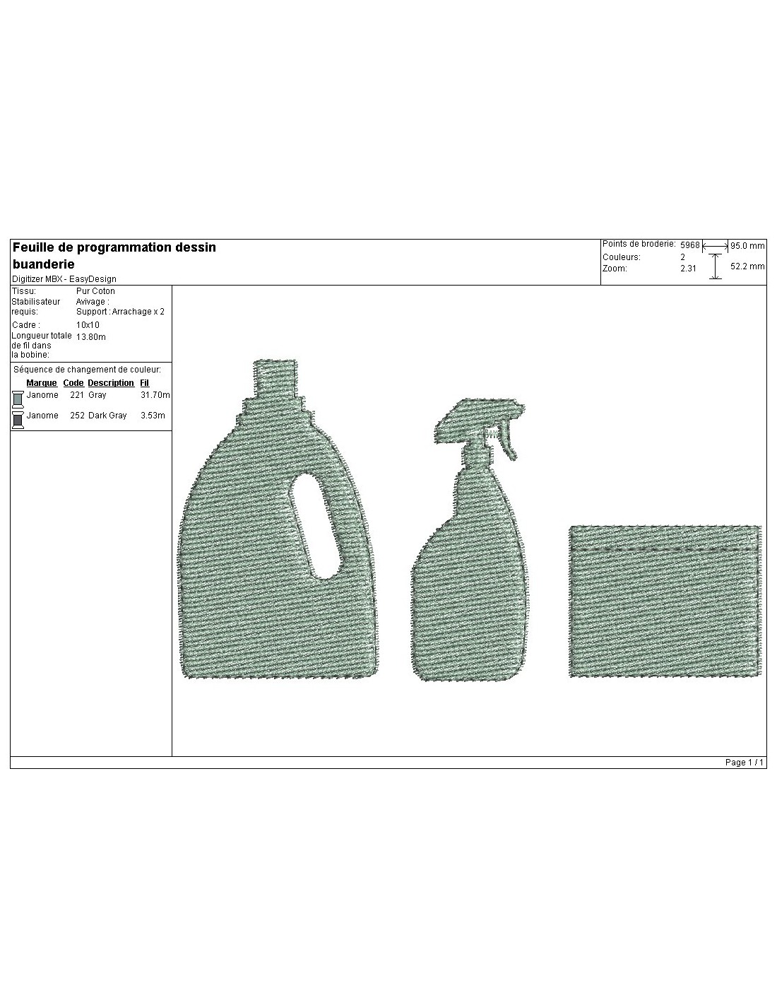 Voici une série de produits ménager à broder sur vos créations destinées à l'entretien du linge ou de votre maison