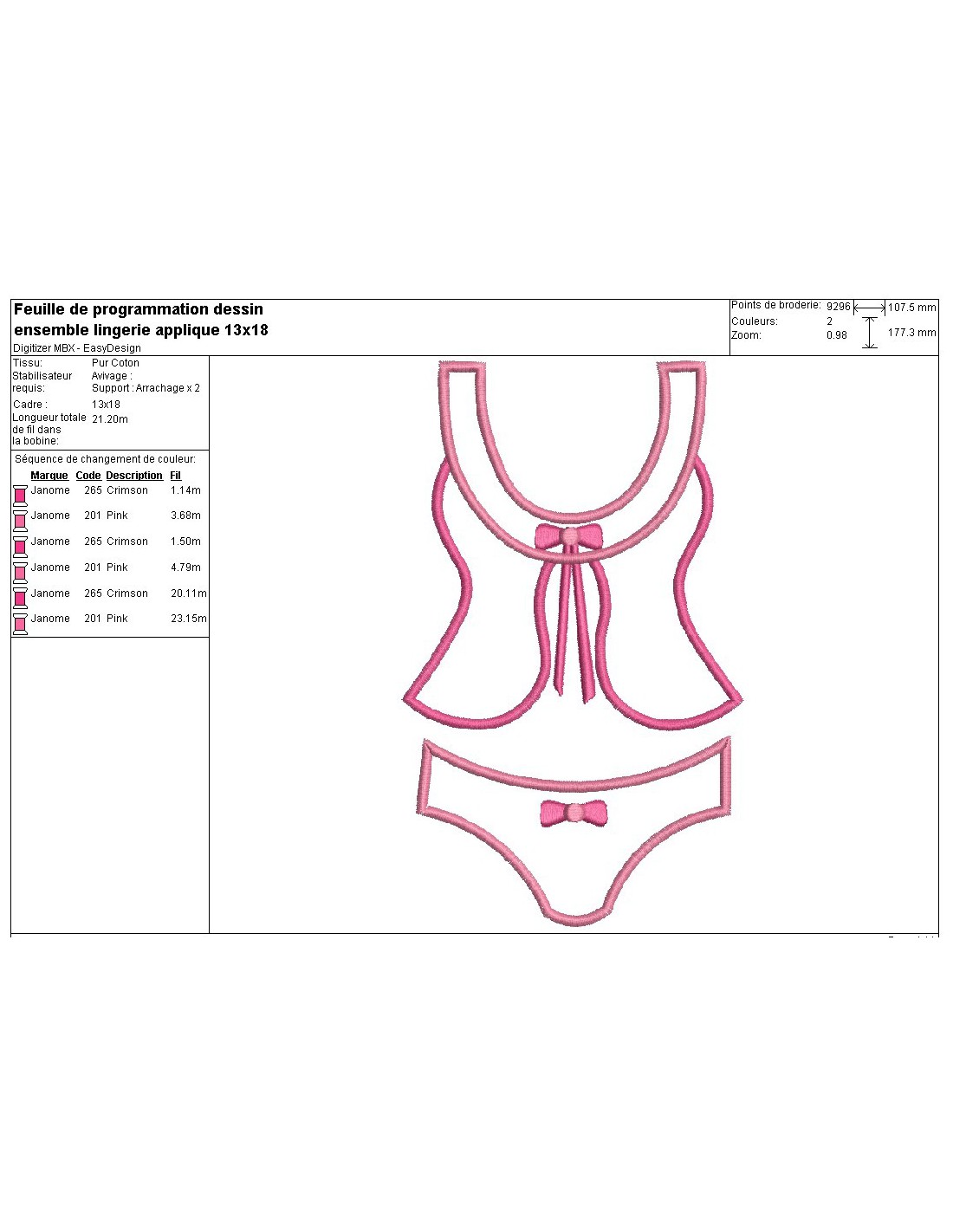 Voici un ensemble lingerie à broder en appliqué sur diverses créations