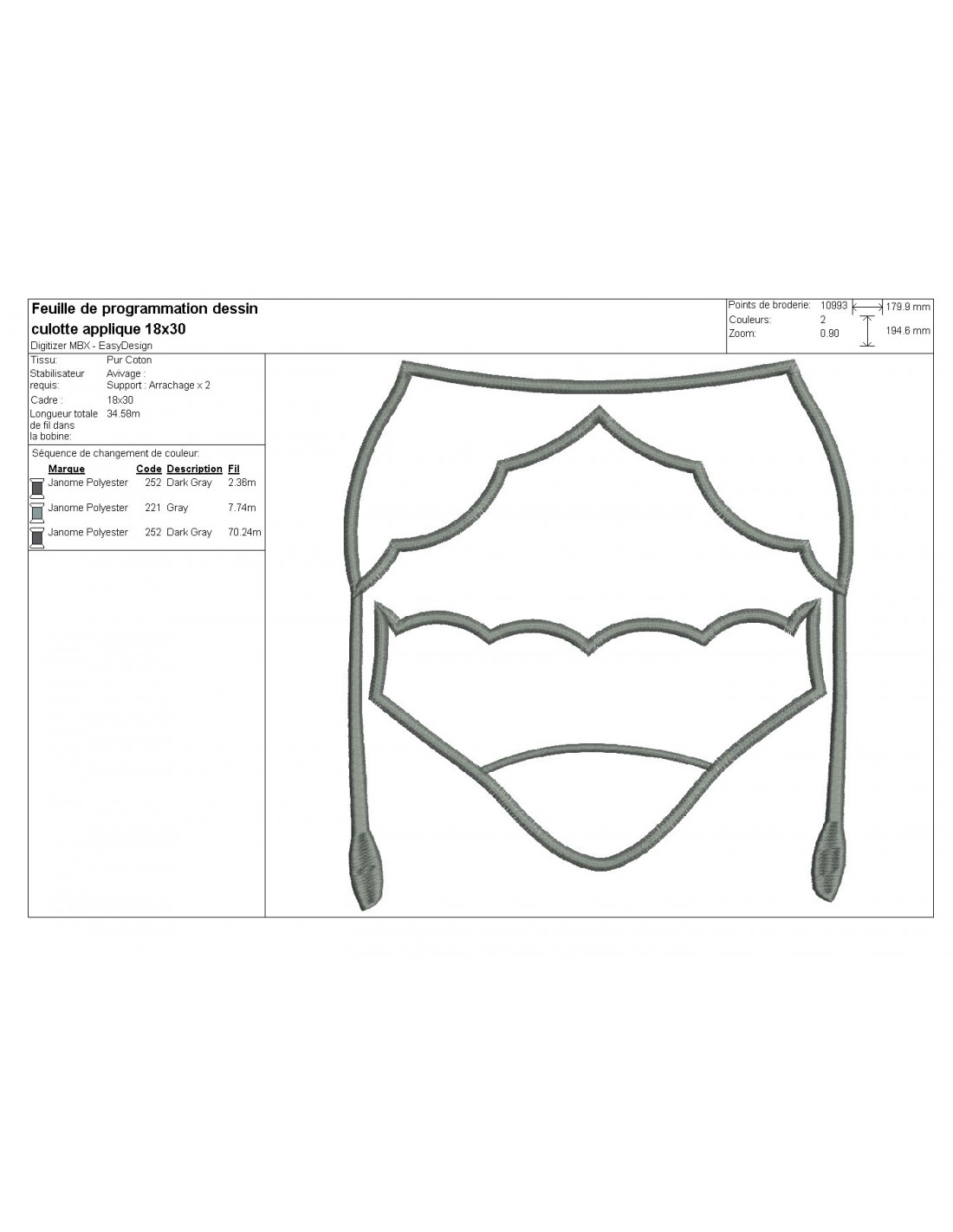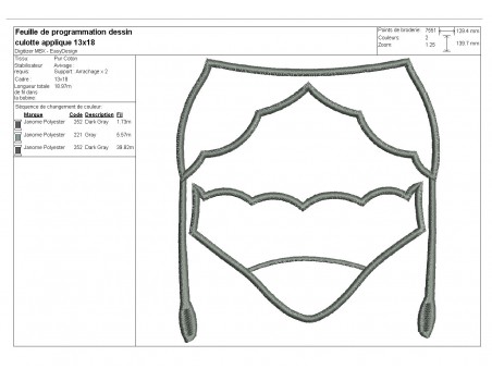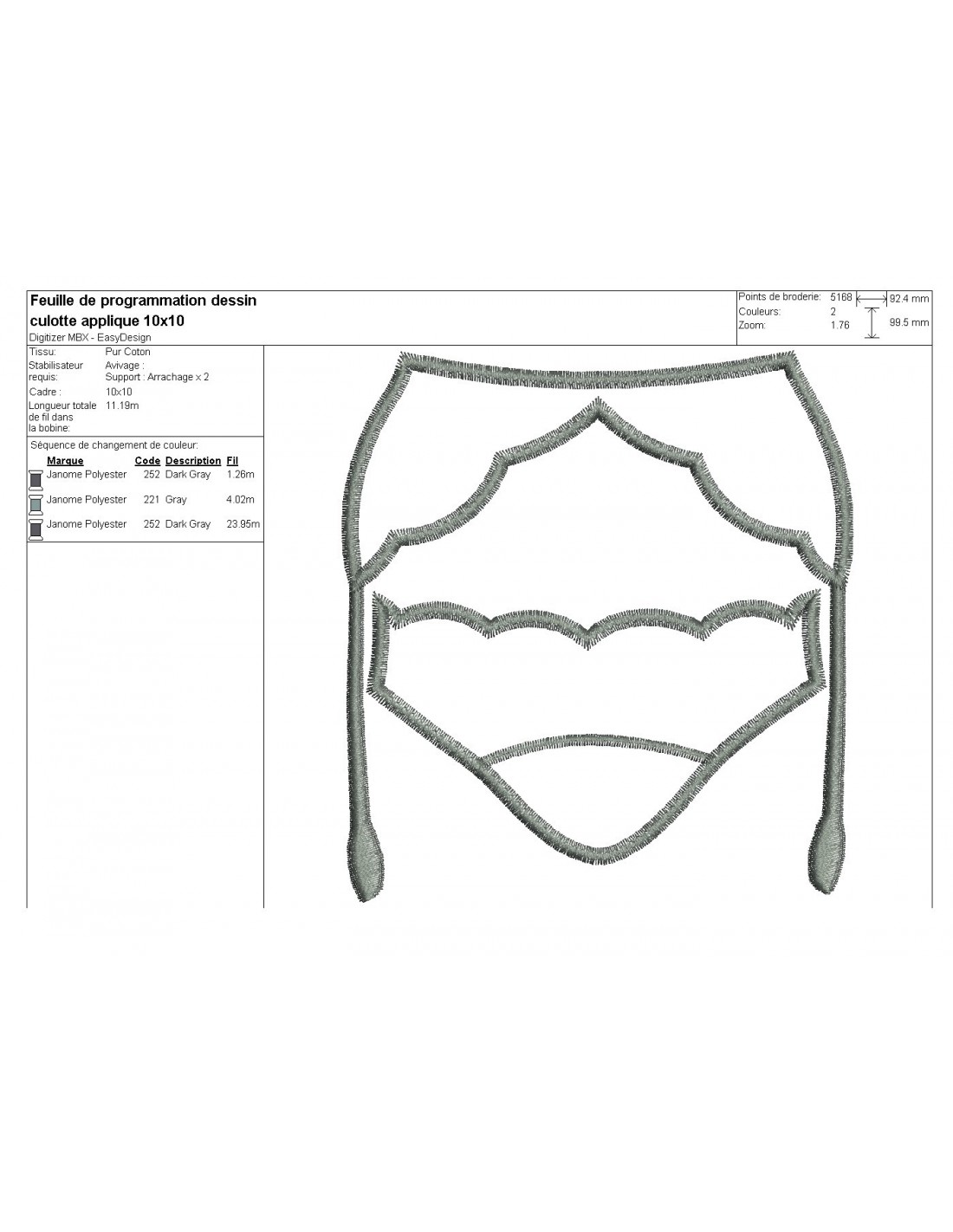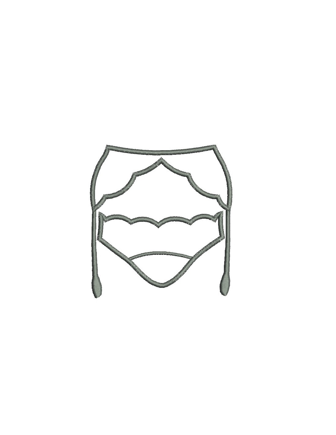 Voici un ensemble lingerie culotte et porte jarretelles à broder en appliqué sur diverses créations féminines comme un pochon pour ranger vos sous vêtements