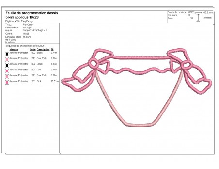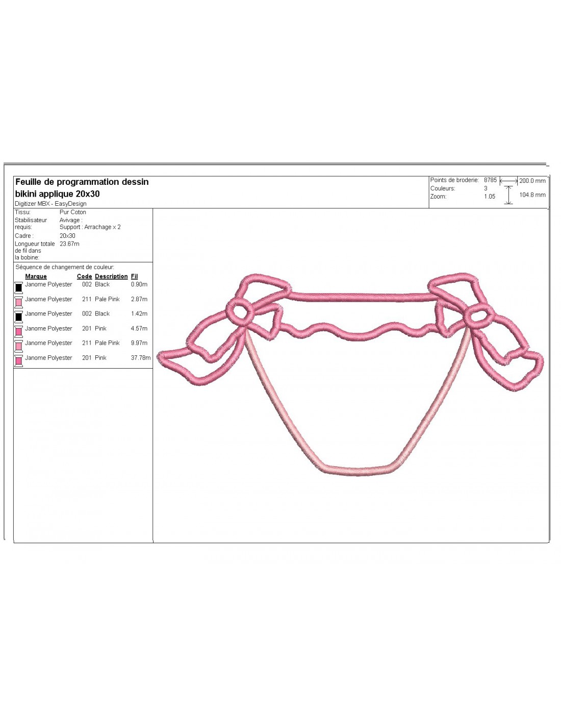 Voici un motif de broderie le petit bikini enfant , à broder en appliqué sur des créations comme un sac, un tote bag, une pochette pour ranger le maillot de bain